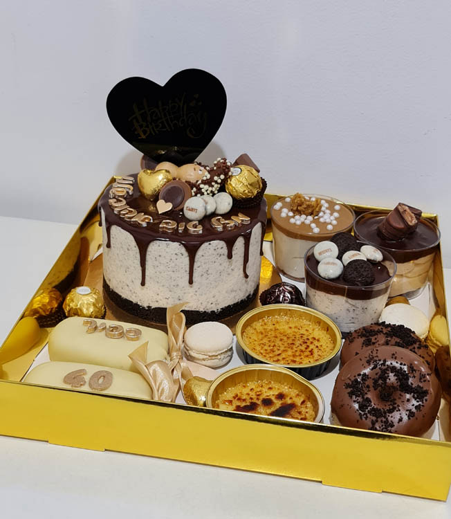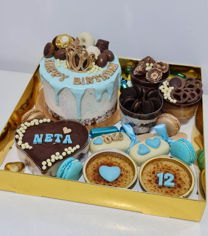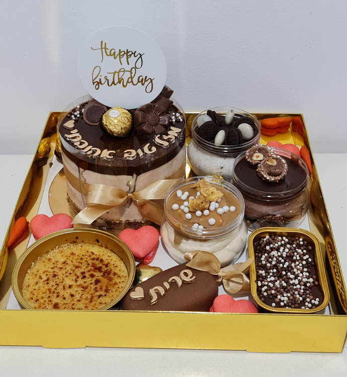מגוון מארזים מפנקים עם עוגה קוטר 14 ושלל קינוחים